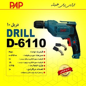 دریل برقی 450 وات پی ای پی PAP مدل D-6110 (12 ماه گارانتی)