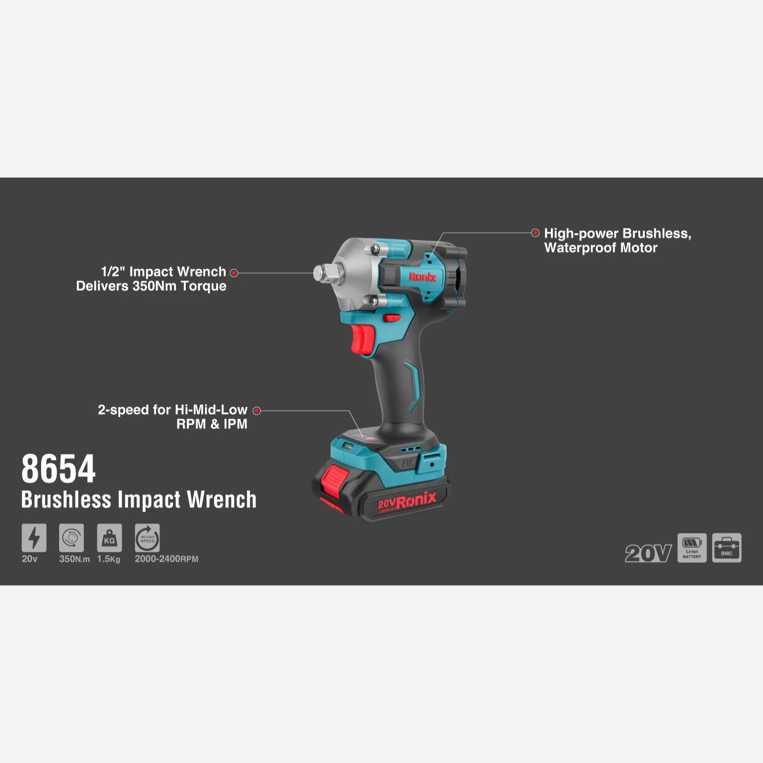 آچار بکس شارژی 20 ولت رونیکس مدل 8654 (12 ماه گارانتی)