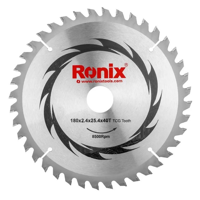 ارائهشده در جعبه رنگی رونیکس همراه با گونیا، آچار آلن، صفحه برش 180×2.4×25.4 میلیمتری 40T