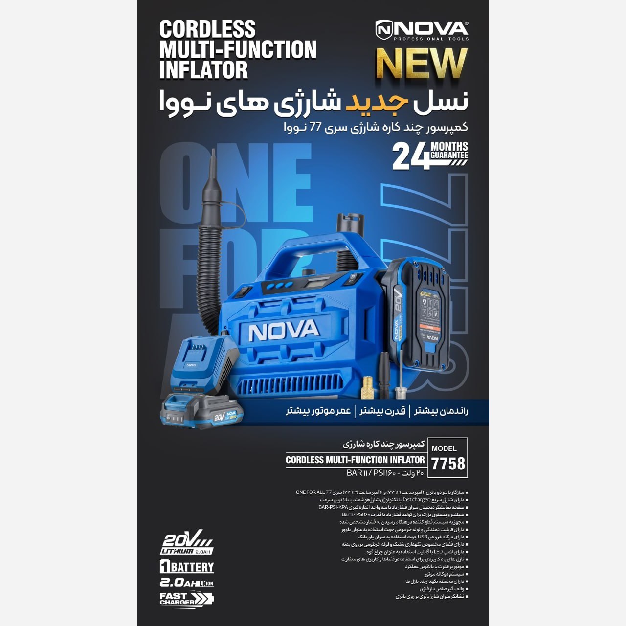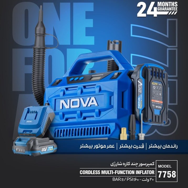 کمپرسور چندکاره شارژی 20 ولت نووا مدل 7758 (24 ماه گارانتی)