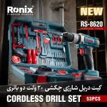 کیت دریل شارژی چکشی 20 ولت 53 پارچه رونیکس مدل RS-8620 (12 ماه گارانتی)