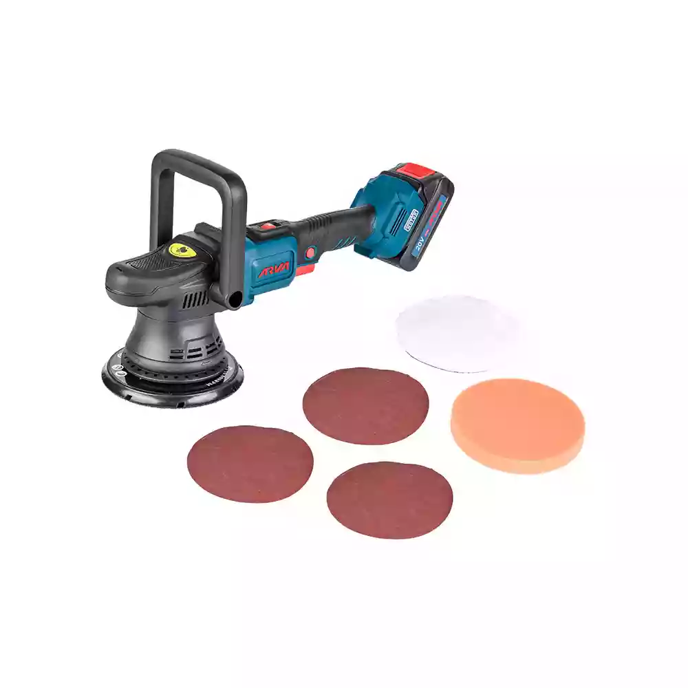 آروا ۵۸۸۵ با موتور براشلس ۲۰ ولت، اوربیتال عظیم ۲۱ میلیمتر، ۶ سرعت تا ۴۸۰۰ دور و صفحه ۱۵۰ میلیمتری، خط و خشهای عمیق را در یک مرحله حذف میکند – بدون کابل، بدون خستگی و کاملاً قابل حمل!