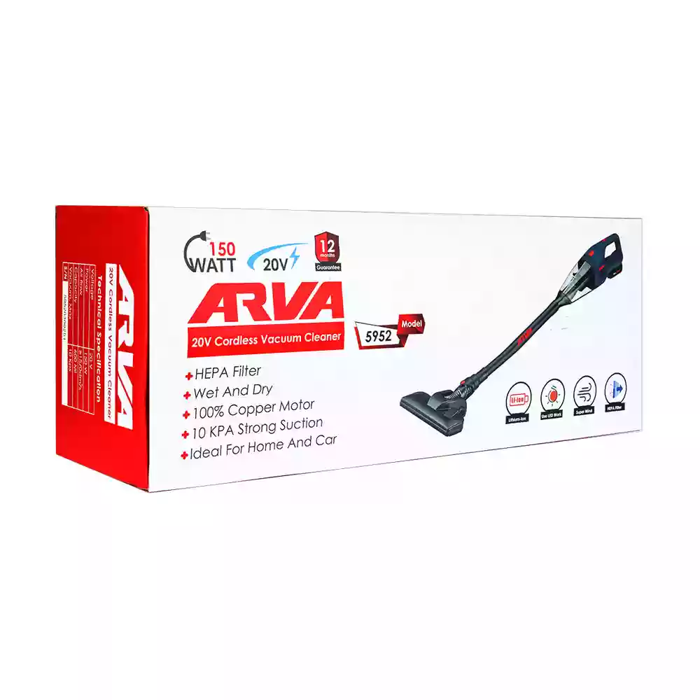 جارو شارژی دستی ۲۰ ولت ۱۵۰ وات آروا مدل 5952 (12 ماه گارانتی)