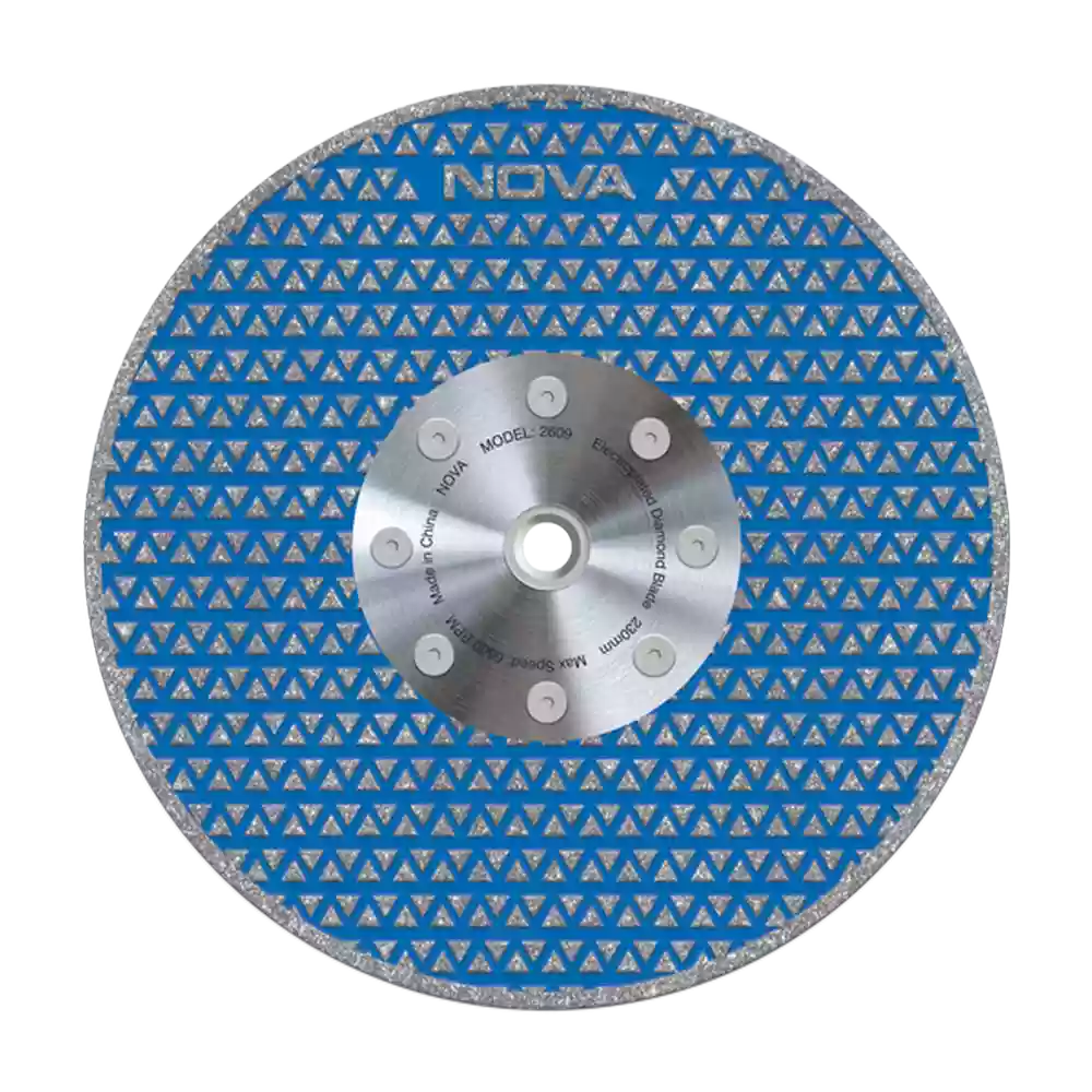 صفحه الماسه الکتروبلید 230 میلی‌متری نووا مدل 2609، ابزاری قدرتمند و حرفه‌ای برای برش و سنگ‌زنی مصالح سخت مانند گرانیت، مرمر، سرامیک و پرسلان است. این صفحه با سگمنت‌های الماسه مثلثی شکل در هر دو طرف و فرمولاسیون پیشرفته الماس تولید شده که دقت و کیفیت برش را به حداکثر می‌رساند. طراحی بالانس‌شده و فلنچ فلزی مرکزی، عملکردی ایمن و بدون لرزش را در سرعت‌های بالا تضمین می‌کند. ?️