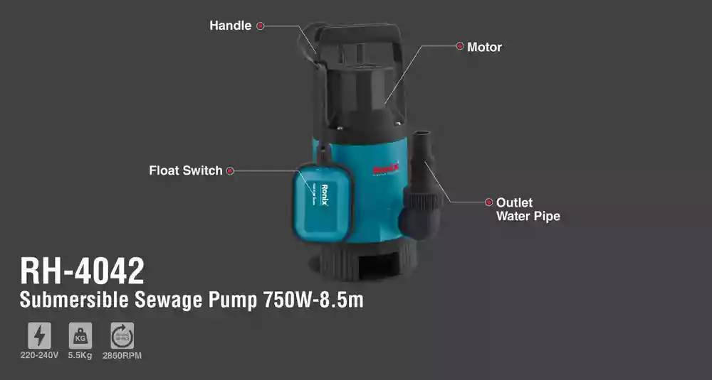 پمپ لجن‌کش RH-4042 رونیکس ابزاری قدرتمند و مطمئن برای تخلیه آب‌های آلوده، فاضلاب‌های خانگی و محیط‌هایی با ذرات معلق جامد است. این دستگاه با توان 750 وات و طراحی مستغرق، قادر است به راحتی آب‌های کثیف حاوی ذرات تا قطر 35 میلی‌متر را پمپاژ کند.