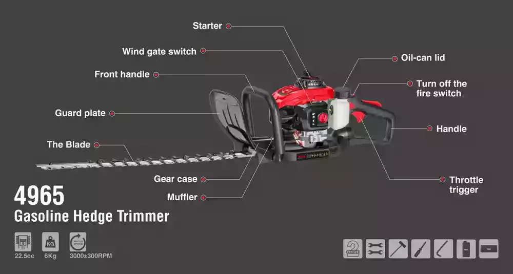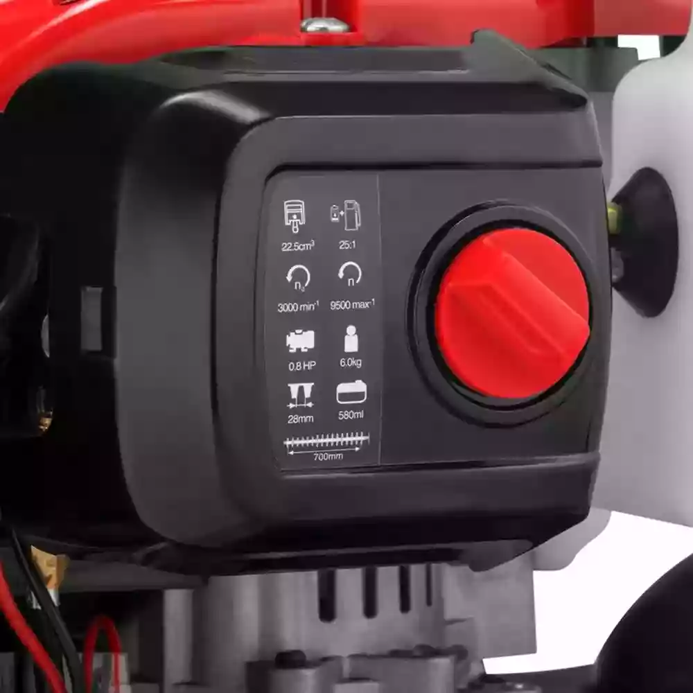 - ? موتور دو زمانه قدرتمند: توان 0.8 اسب بخار با حجم 22.5 سیسی برای هرس سریع و کارآمد