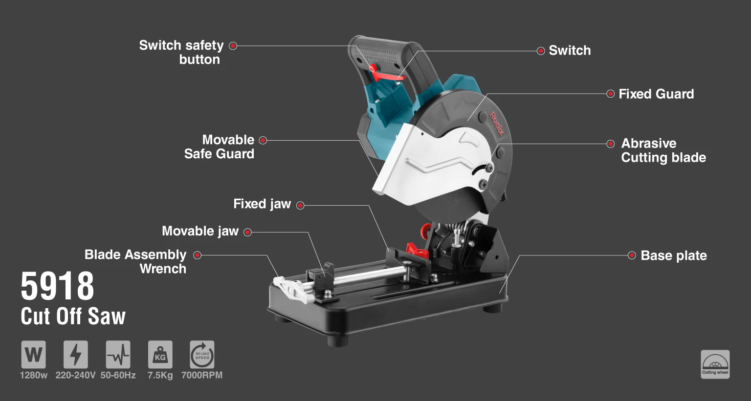 سبک و 7.5 کیلوگرمی؛ طراحی ارگونومیک؛ مجهز به دسته‌  Dشکل به منظور سهولت کاربری و کنترل بیشتر دستگاه هنگام برش‌های مستقیم و زاویه‌دار؛ فک ثابت و متحرک گیره برای عملکرد مطلوب در انجام برش‌های دقیق؛ کفی باکیفیت و اتصالات تقویت‌شده با جوشکاری که دچار لقی و تغییر شکل نمی‌شوند و دقت برش را حفظ می‌کنند.