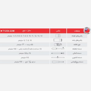 | سوکتهای 1/2 اینچی | 18 عدد در سایزهای 10، 11، 12، 13، 14، 15، 16، 17، 18، 19، 20، 21، 22، 23، 24، 27، 30 و 32 میلیمتر |